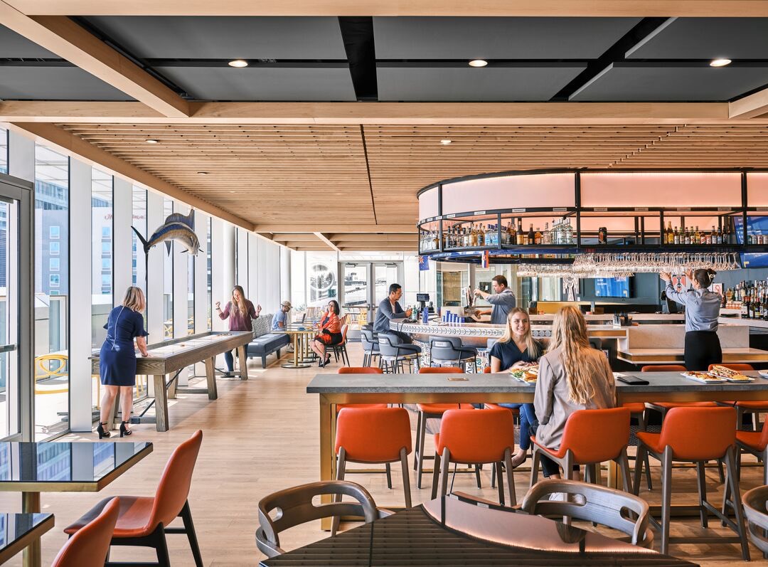 Eight bartenders compete in a 5th-grade science fair style, with each bartender having a table for them to serve pre-batched drinks for the guests and a station to make the drinks live for the judges.